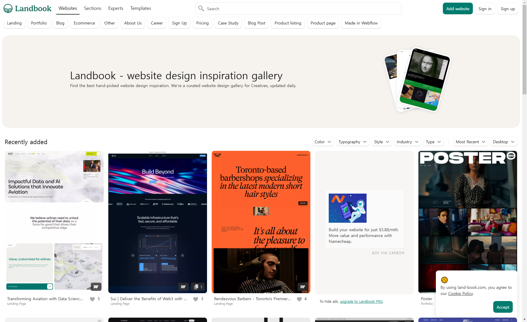 랜드북은 스타트업이나 브랜드 사이트에서 많이 활용하는 랜딩 페이지 디자인을 전문으로 모았습니다.